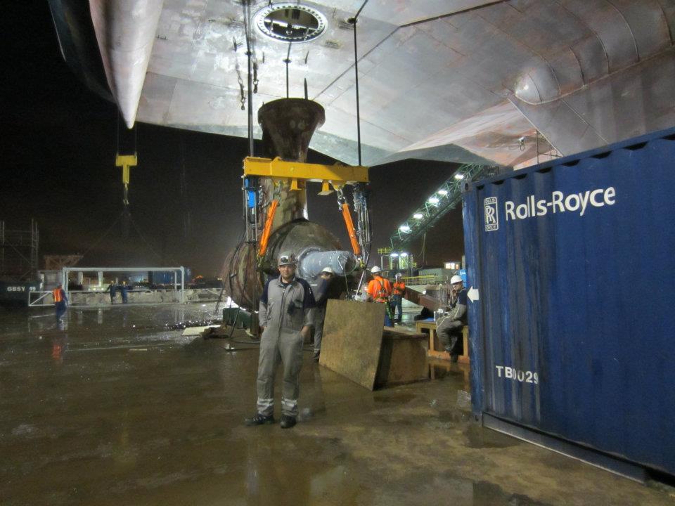 Poddarna på Queen Mary 2 har en omkrets på tre meter och är de största som Rolls Royce och General Electric (GE) tillverkar. Trots att poddarna är stora som en 20-fots container är det en trång arbetsmiljö.