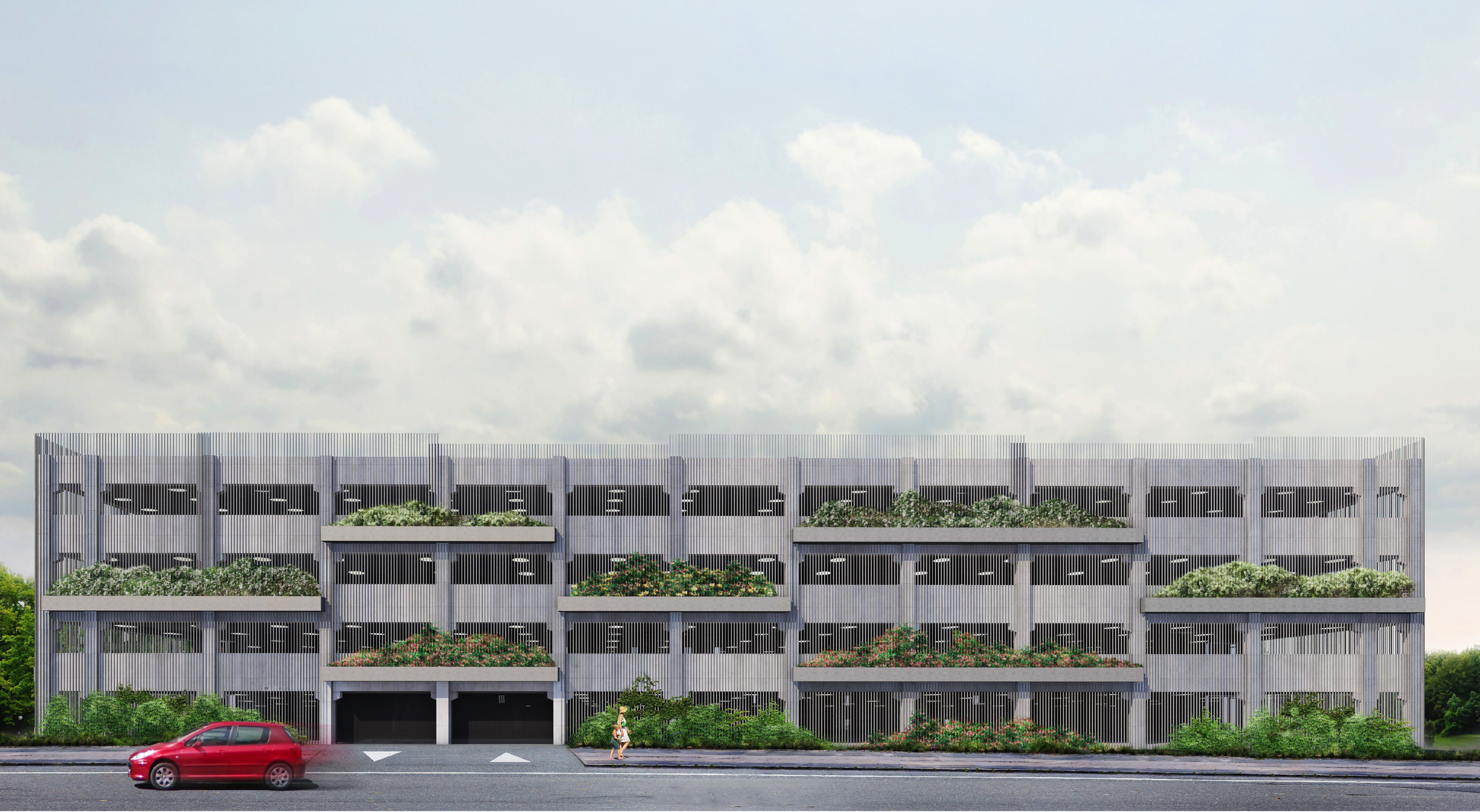 Parkeringshuset byggs centralt i bostadsområdet för att främja användbarheten för de boende. Det blir en ljus miljö, med gott om glaspartier. Det byggs totalt 20 laddstationer för elbilar i parkeringshuset, och det skapas en parkeringsplats per bostadsrätt.