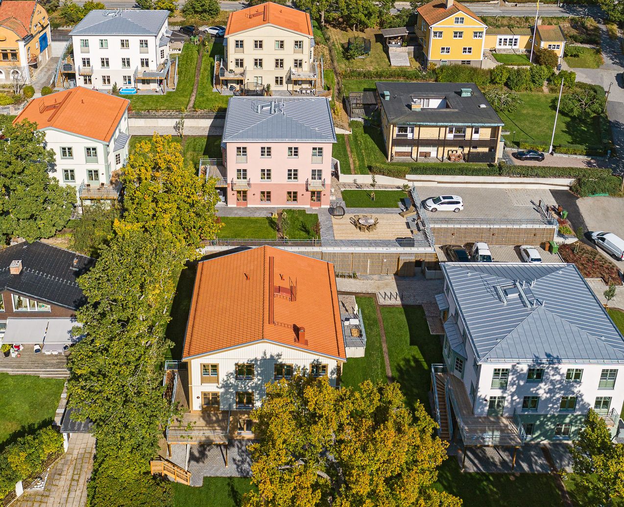Där dåtid, samtid och framtid möts. Moderna parvillor i nationalromantisk stil som bygger vidare på Breviks karaktär.
