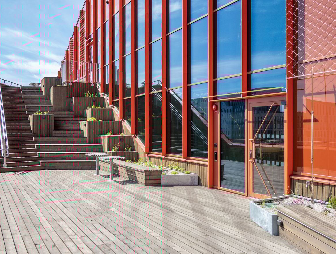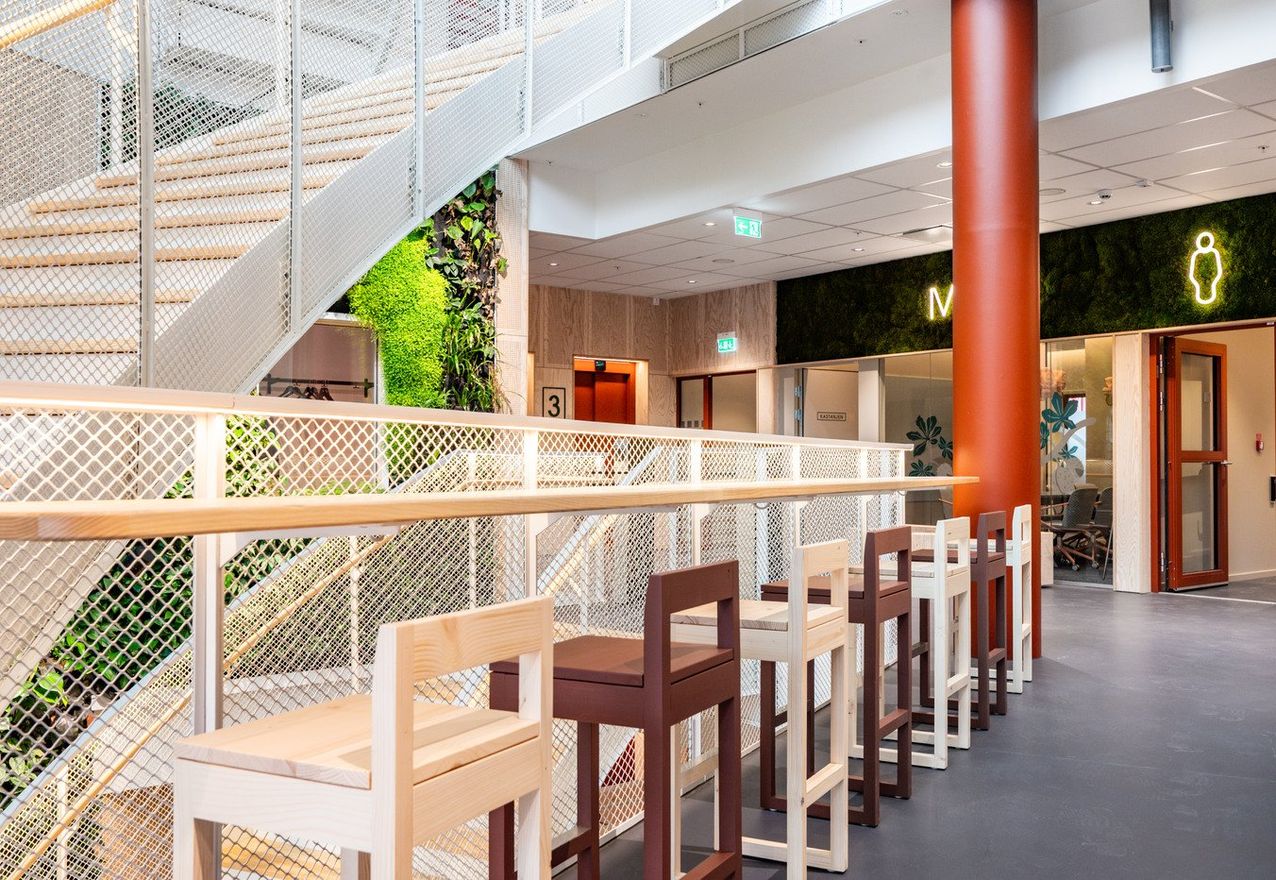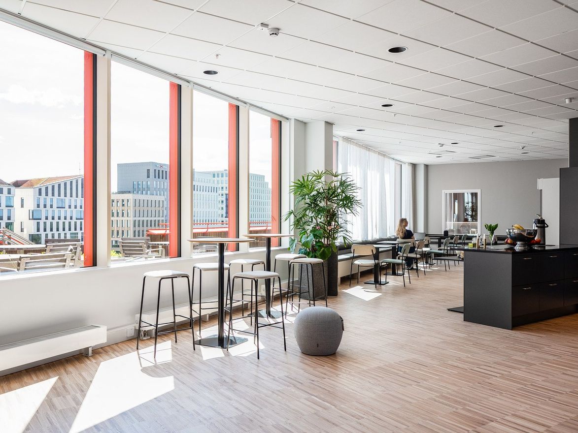 Upptäck det kreativa vardagsrummet i Embassy of Sharing, där arkitekturen bjuder in till rörelse, möten och nya perspektiv. Här finns den slingrande trätrappan längs fasaden, grönskande terrasser i söderläge, ett ljust atrium som binder samman våningsplanen och en atmosfär som inspirerar varje dag.
